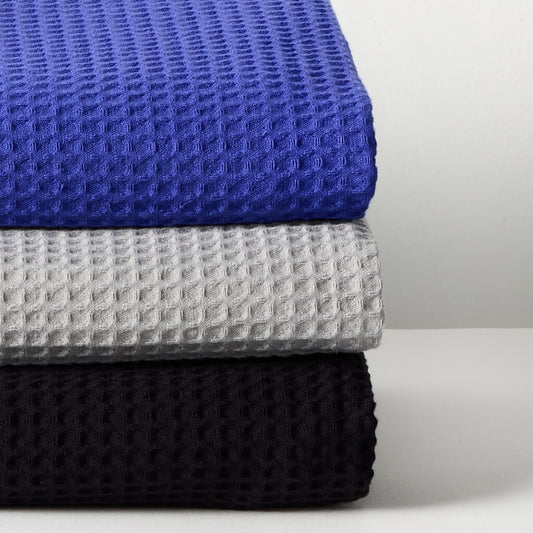 The deep waffle weave of our fabric increases its surface area, meaning that it will dry up to 3x faster than a regular towel or of the same size.