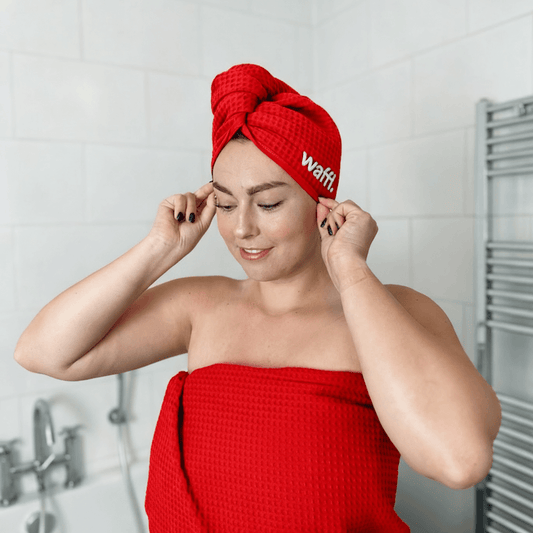 The deep waffle weave of our fabric increases its surface area, meaning that it will dry up to 3x faster than a regular towel or of the same size.