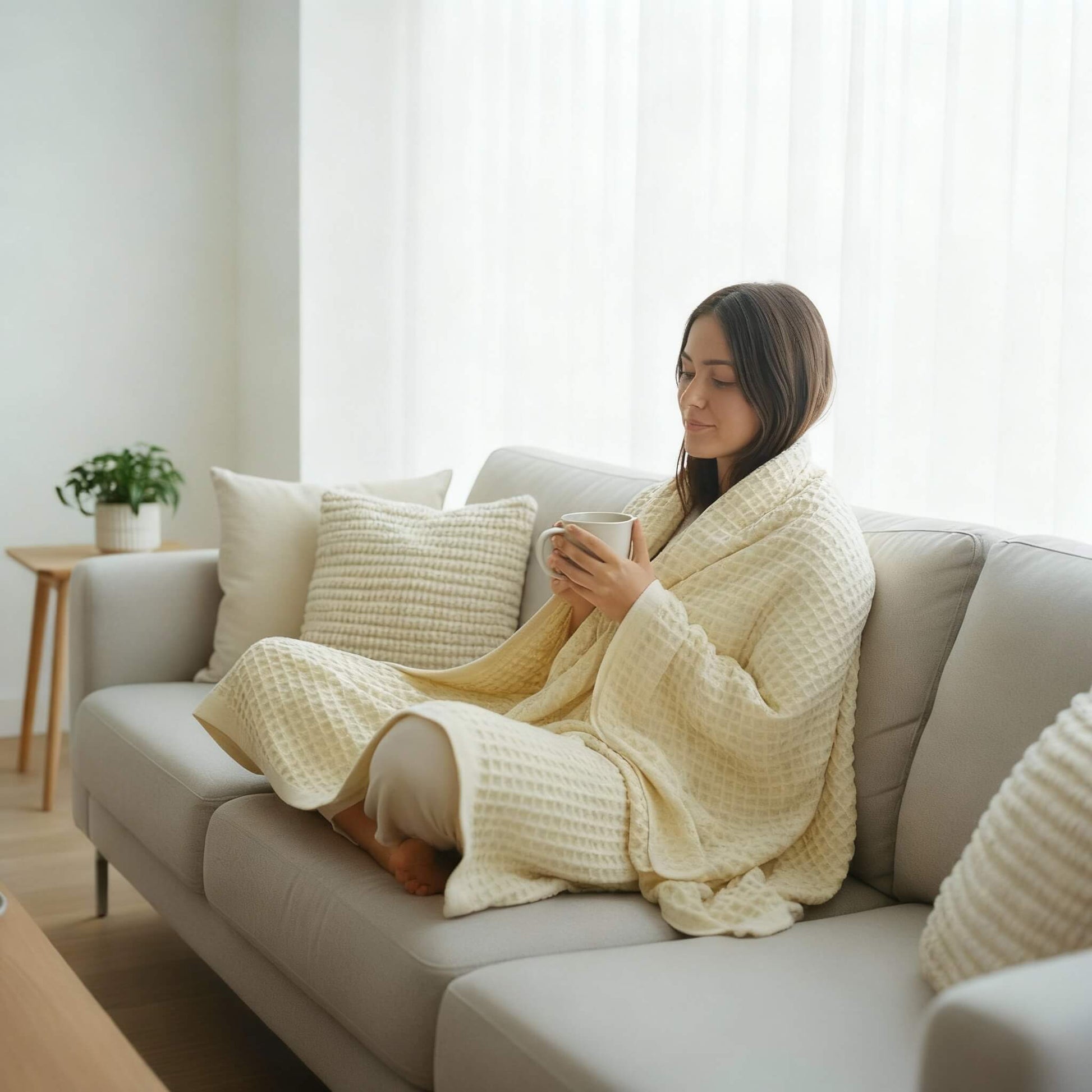 Luxury waffle-weave construction – a sculpted honey-comb texture that feels soft, substantial, and effortlessly elevated.